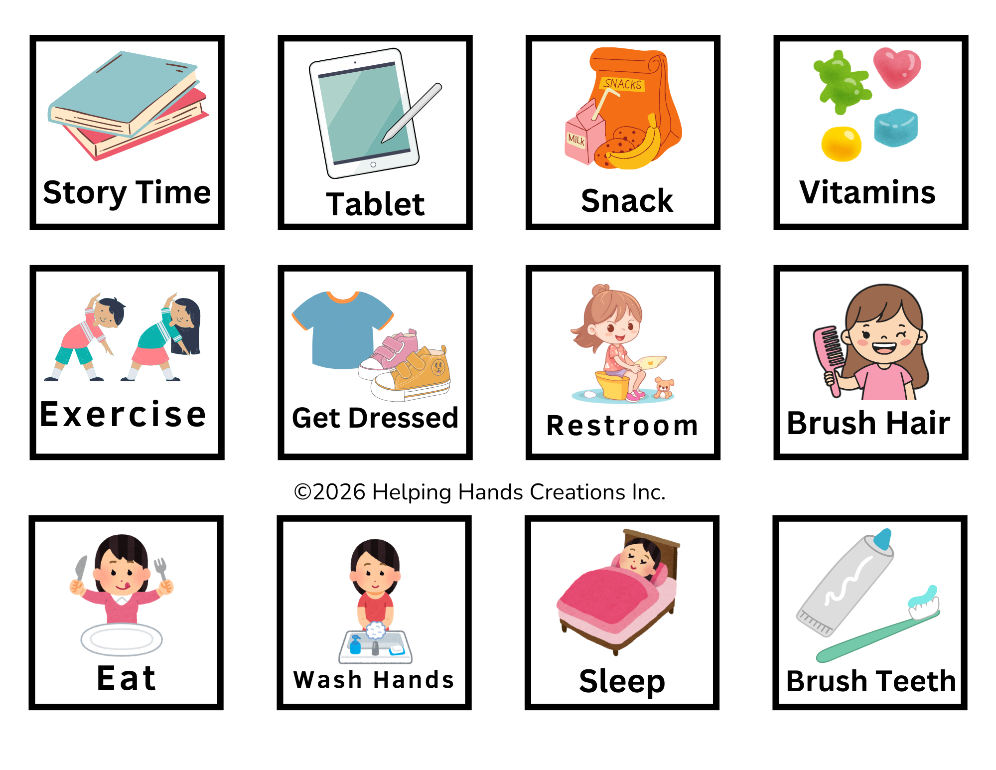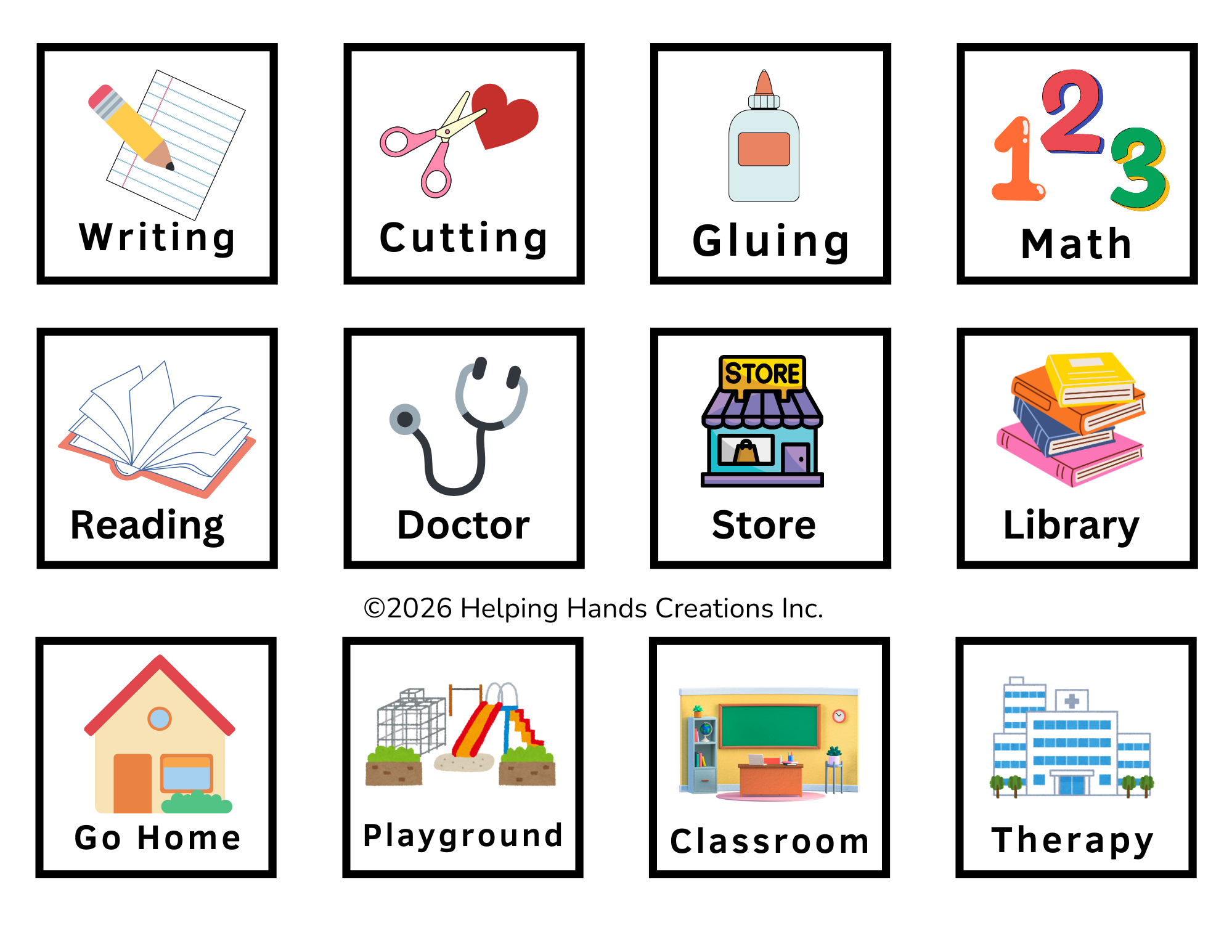 For the convenience of therapists, educators, and families, we remade our transition board series so it is possible to reuse the actions/places/etc square’s for the child’s transition board.