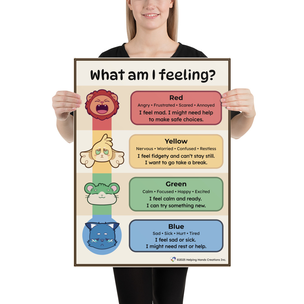 This playful poster introduces the 4 emotional regulation zones through animal characters—making big feelings easier to recognize and talk about.