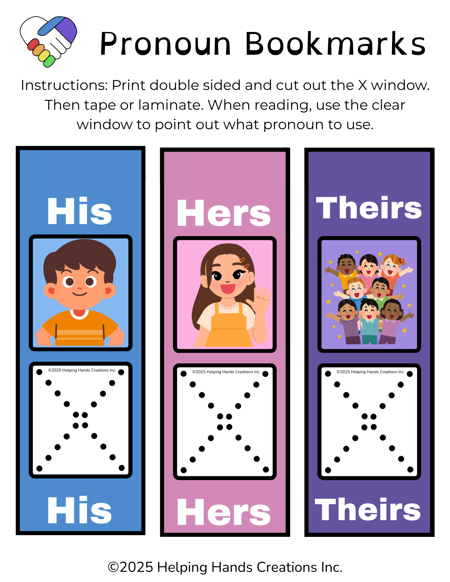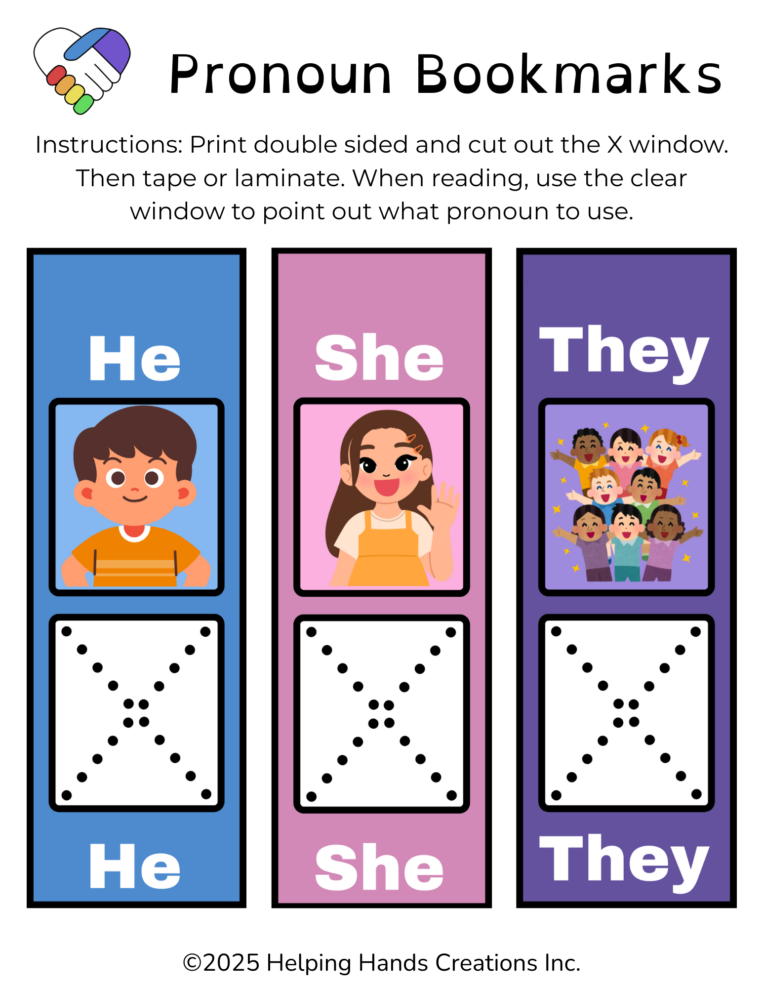 But pronouns are indeed an important skill to learn! So we created pronoun bookmarks!