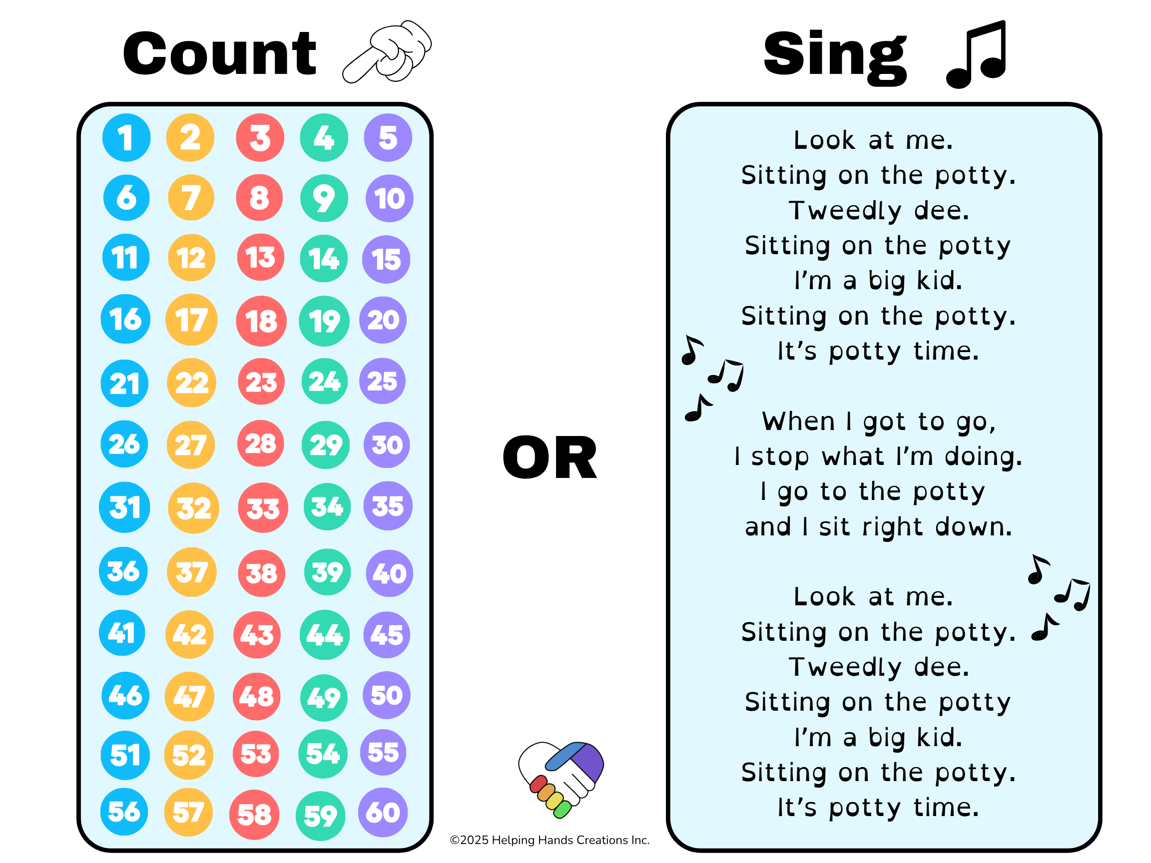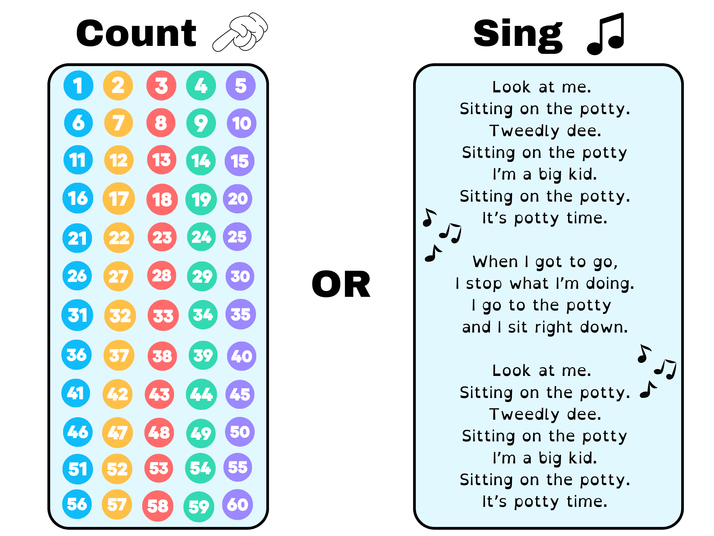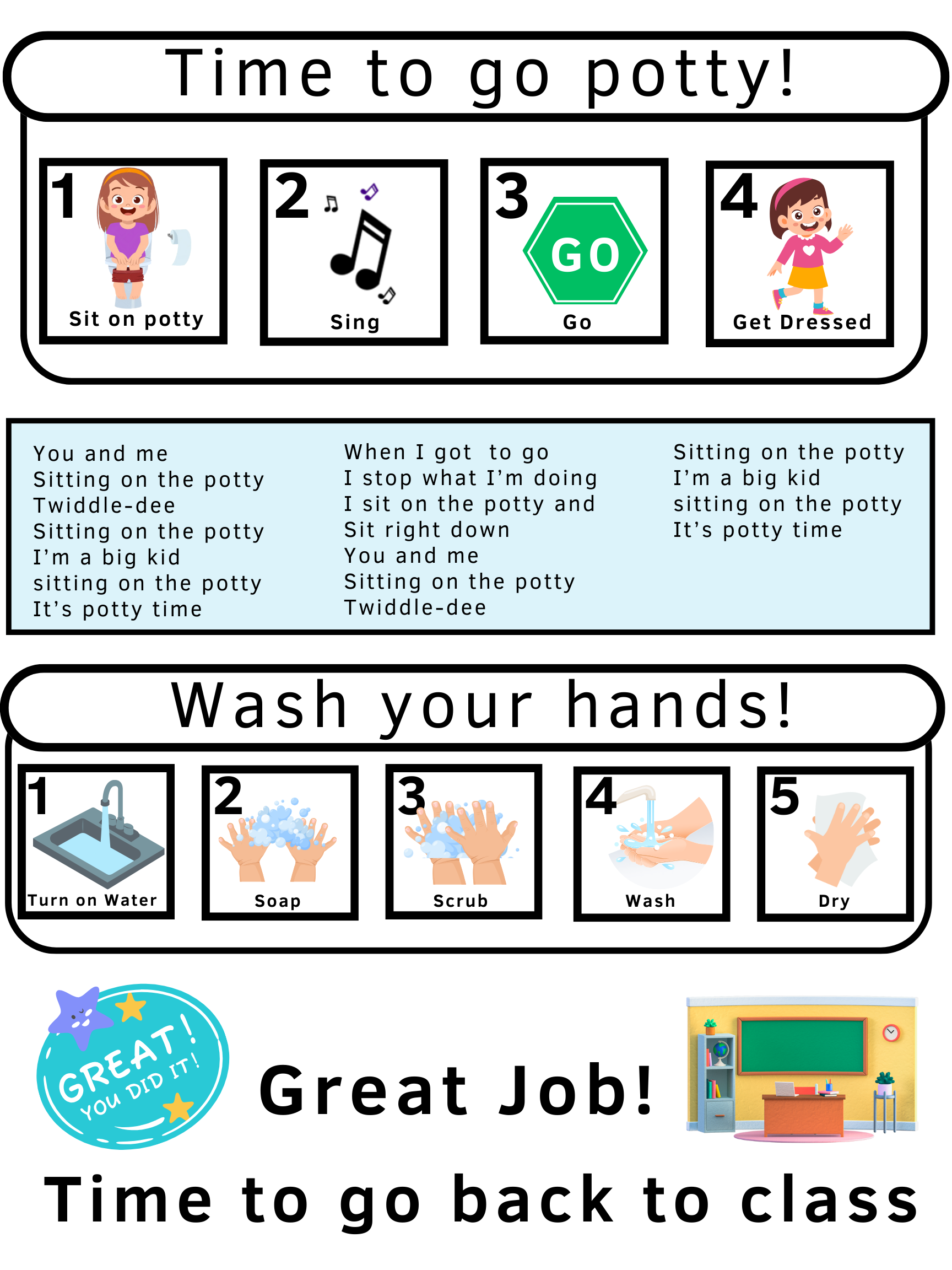 You can post it next to the toilet, song lyrics for those who are reading or know the song, counting for those who are working on counting.
