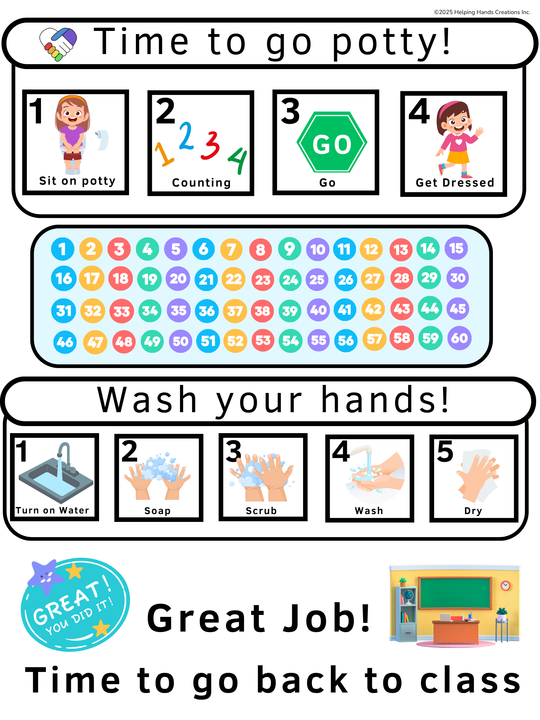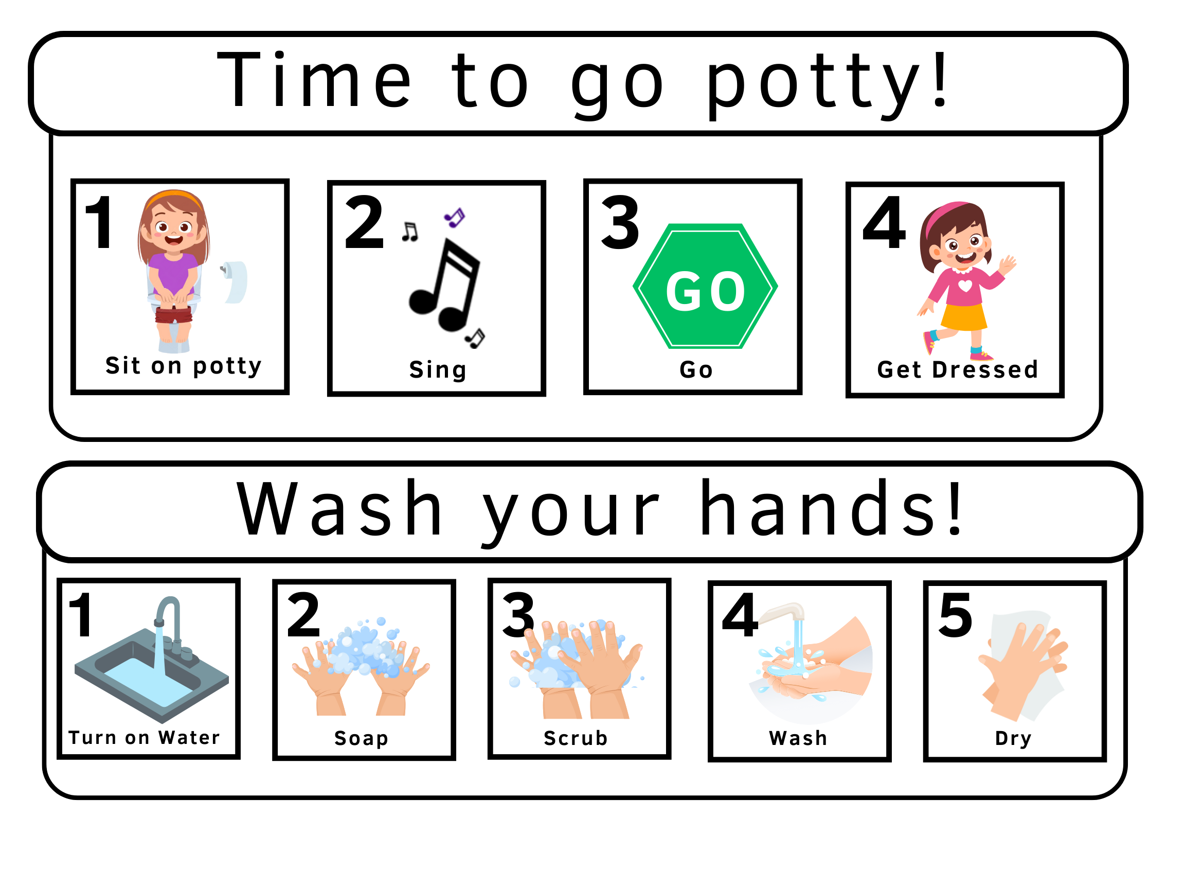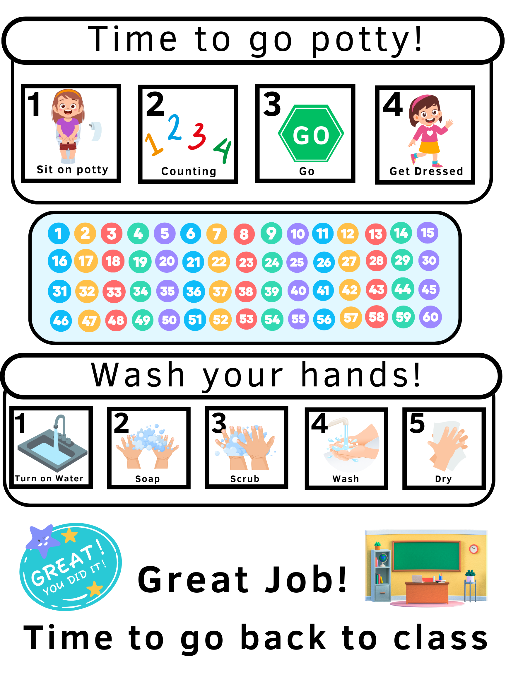 You can post it next to the toilet, song lyrics for those who are reading or know the song, counting for those who are working on counting.